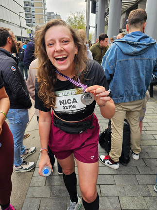 In de overweldigende entourage van de Rotterdam marathon heeft Nica supergoed gelopen! Met noise-cancelling koptelefoon rende ze lekker door terwijl de fanclub probeerde een glimp van haar op te vangen door per fiets langs het parcours te crossen. En zowaar: ondanks een uitvallend tracking systeem en een gigantische drukte zagen ze haar in de verte richting de finish snellen. Met haar kwart marathon haalde ze maar liefst 1465 euro op voor onze Stichting!! Daarmee won ze haar persoonlijk record, een fraaie medaille van niet-kinderachtig Rotterdams formaat, de trots van haar moeder Noor (tevens secretaris van onze Stichting), en onze eeuwige dank.